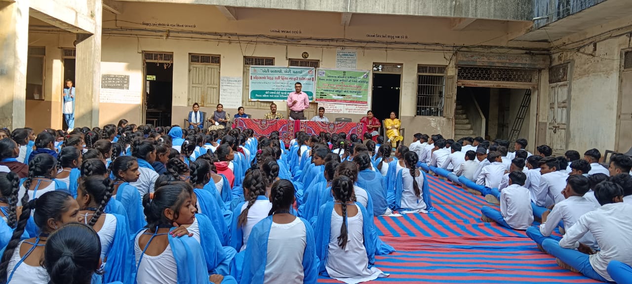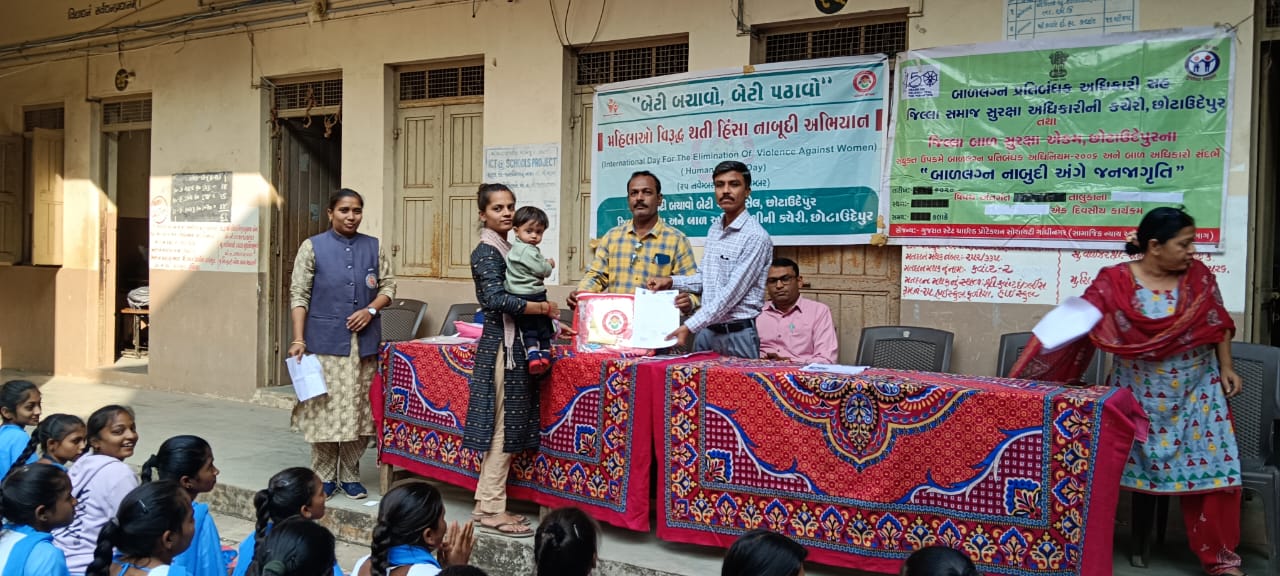 મહિલા અને બાળ અધિકારી કચેરી દ્વારા તા.25 નવેમ્બર થી 10 ડીસેમ્બર સુધી વિવિધ થીમ આયોજિત પ્રોગ્રામ નું આયોજન કરવામાં આવેલ છે જે ભાગરૂપે તા.03/12/24 ના રોજ બાળ લગ્ન પ્રતિબંધિત અધિનિયમ ૨૦૦૬ અંતર્ગત કવાંટ તાલુકાના ઇંગલિશ હાઈસ્કૂલ ખાતે જાગૃતિ કાર્યક્રમનું આયોજન કરવામાં આવ્યું હતું.