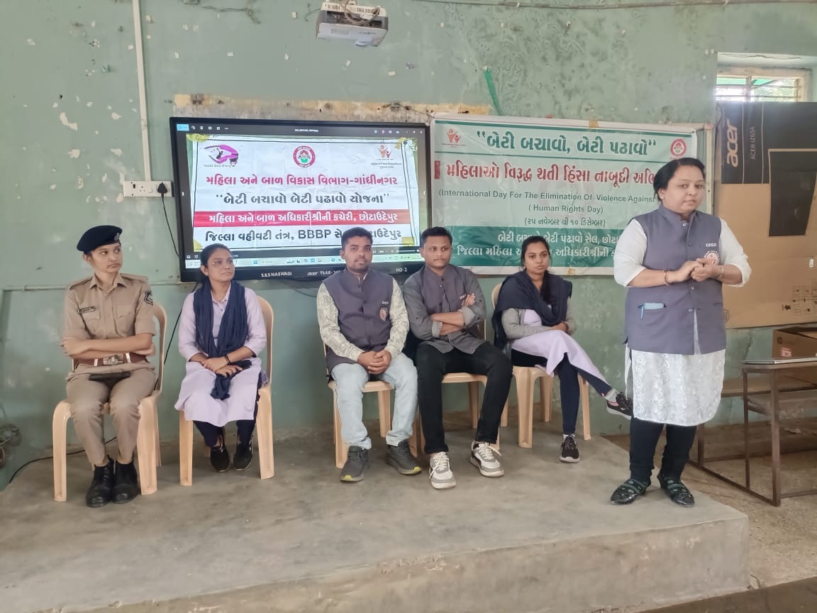 મહિલા અને બાળ અધિકારીના માર્ગદર્શન હેઠળ ડિસ્ટ્રીક ફોર એમ્પાવરમેન્ટ વિમેન યોજના કર્મચારી દ્વારા મહિલા અને બાળ અધિકારીની કચેરીની યોજનાની માહિતી આપવામાં આવી હતી. સી ટીમના કર્મચારી દ્વારા સ્કૂલની દીકરીઓ 127 જેટલી દીકરીઓને સેલ્ફ ડિફેન્સની તાલીમ આપવામાં આવી હતી. જેમાં બેટી બચાઓ બેટી પઢાઓ લોગો વાળી ટી શર્ટ તેમજ કેપની વિતરણ કરવામાં આવી હતી.