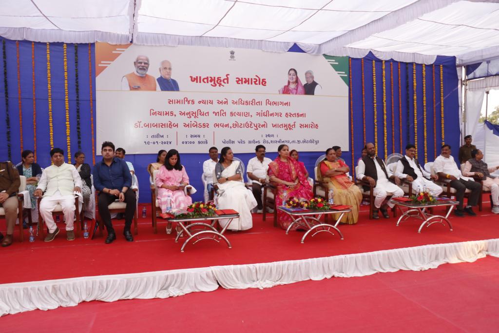 સામાજિક ન્યાય અને અધિકારીતા વિભાગના નિયામક અનુસુચિત જાતિ કલ્યાણ  હસ્તક આજરોજ છોટાઉદેપુર શહેરના ખુંટાલિયા રોડ પર શાસ્ત્રીનગરમાં ૨૫૦૦ ચો.મી. ક્ષેત્રફળમાં ડો. બાબાસાહેબ આંબેડકર ભવન બાંધવામાં આવશે. ભાનુબેન બાબરિયા, મંત્રી સામાજિક ન્યાય અને અધિકારીતા વિભાગ અને મહિલા આને બાળ વિકાસ વિભાગ, ના હસ્તે ખાત મુહૂર્ત કરવામાં આવ્યું હતું.   ડો.બાબા સાહેબ આંબેડકરના યોગદાનને ધ્યાને રાખીને તેમના સ્મૃતિચિહ્ન રૂપે આ ભવનો બનાવવામાં આવ્યા છે. અમદાવાદ ખાતે રાષ્ટ્રીય કક્ષાના આંબેડકર ફાઉન્ડેશનનું ઉદ્ઘાટન તત્કાલીન મુખ્યમંત્રી અને હાલના વડાપ્રધાન નરેન્દ્રભાઈ મોદીએ કરેલું જેમાં ઓડીટોરીયમ, મ્યુઝીયમ, લાઈબ્રેરી જેવી વિવિધ આધુનિક સુવિધાઓ આપવામાં આવી છે.