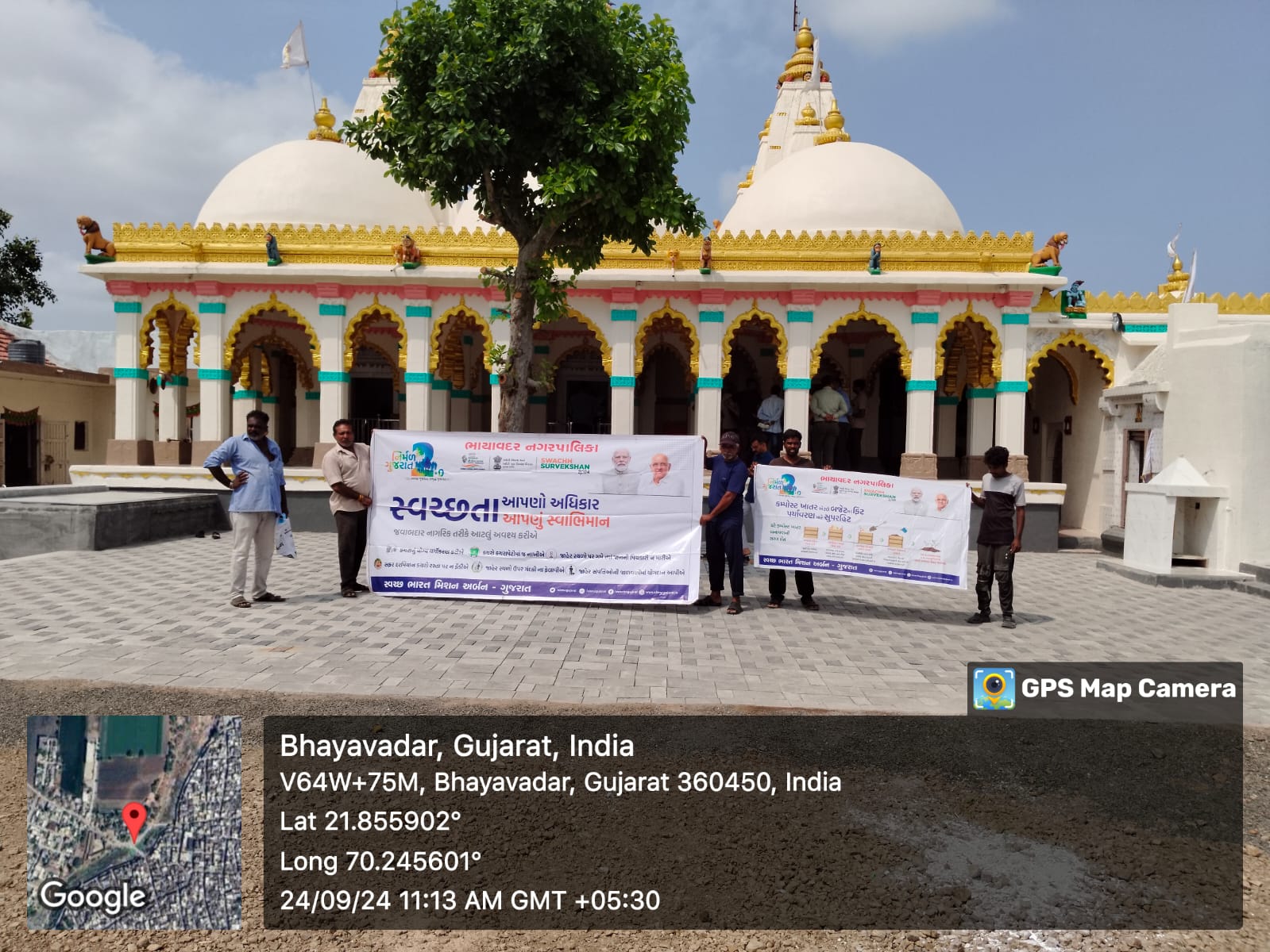 રાજકોટ જિલ્લાના ઉપલેટા તાલુકાની ભાયાવદર નગરપાલિકા દ્વારા ‘સ્વચ્છતા જ સેવા’ અભિયાન નિમિત્તે વિવિધ સ્થળોએ સાફસફાઈની કામગીરી કરવામાં આવી રહી છે. જેના ભાગરૂપે શહેરમાં ગંજીવાડા, પીપળા શેરી સહિતના વિસ્તારોમાં આવેલા મંદિરો, રોડ-રસ્તાને ચોખ્ખાંચણાક કરવામાં આવ્યા હતા.