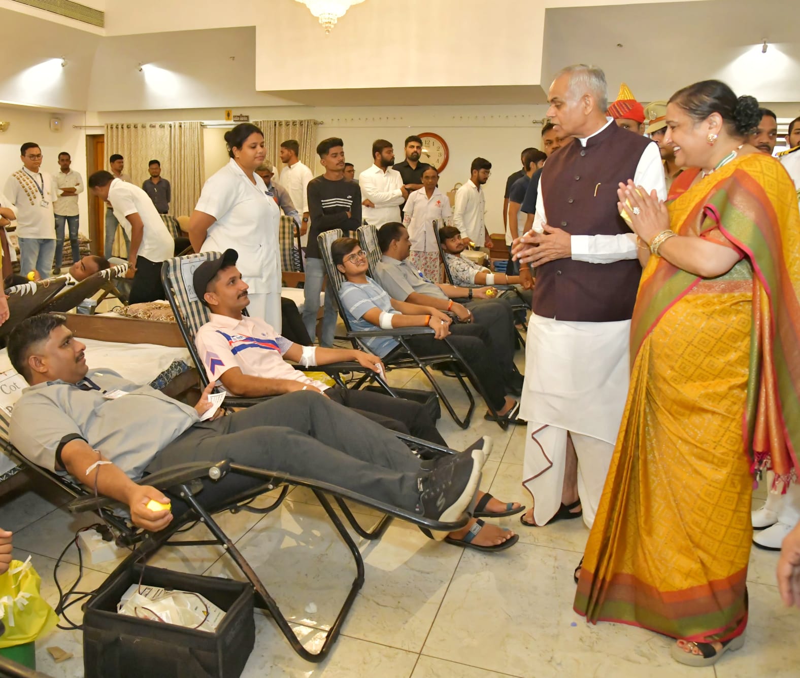લેડી ગવર્નર શ્રીમતી દર્શનાદેવીજીના જન્મદિવસે રાજભવન પરિવાર દ્વારા રક્તદાન કેમ્પનું આયોજન : ૬૦૫ યુનિટ રક્ત એકત્ર કરાયું