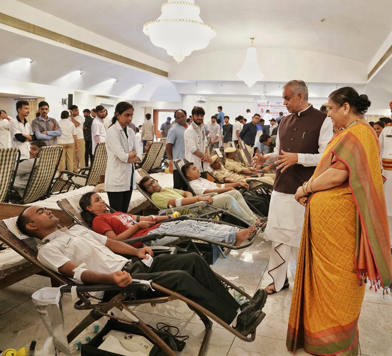 લેડી ગવર્નર શ્રીમતી દર્શનાદેવીજીના જન્મદિવસે સોમવારે રાજભવન પરિવાર દ્વારા રક્તદાન કેમ્પનું આયોજન કરવામાં આવ્યું હતું. આ રક્તદાન કેમ્પ દરમિયાન ૬૦૫ યુનિટ રક્ત એકત્ર કરાયું હતું. રાજ્યપાલ શ્રી આચાર્ય દેવવ્રતજીએ તમામ રક્તદાતાઓનો આભાર માન્યો હતો.