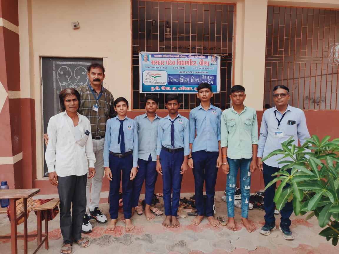 સરદાર પટેલ વિદ્યામંદિર વીણા તાલુકો નડિયાદ ખાતે આજરોજ તારીખ 21મી જૂન 2024 ને શુક્રવારના રોજ વિશ્વ યોગ દિવસની ઉજવણી કરવામાં આવી હતી જેમાં શાળામાં ચાલતા એનએસએસના સ્વયંસેવકોના સહયોગથી યોગના જુદા જુદા આસનો કરાવવામાં આવ્યા હતા.