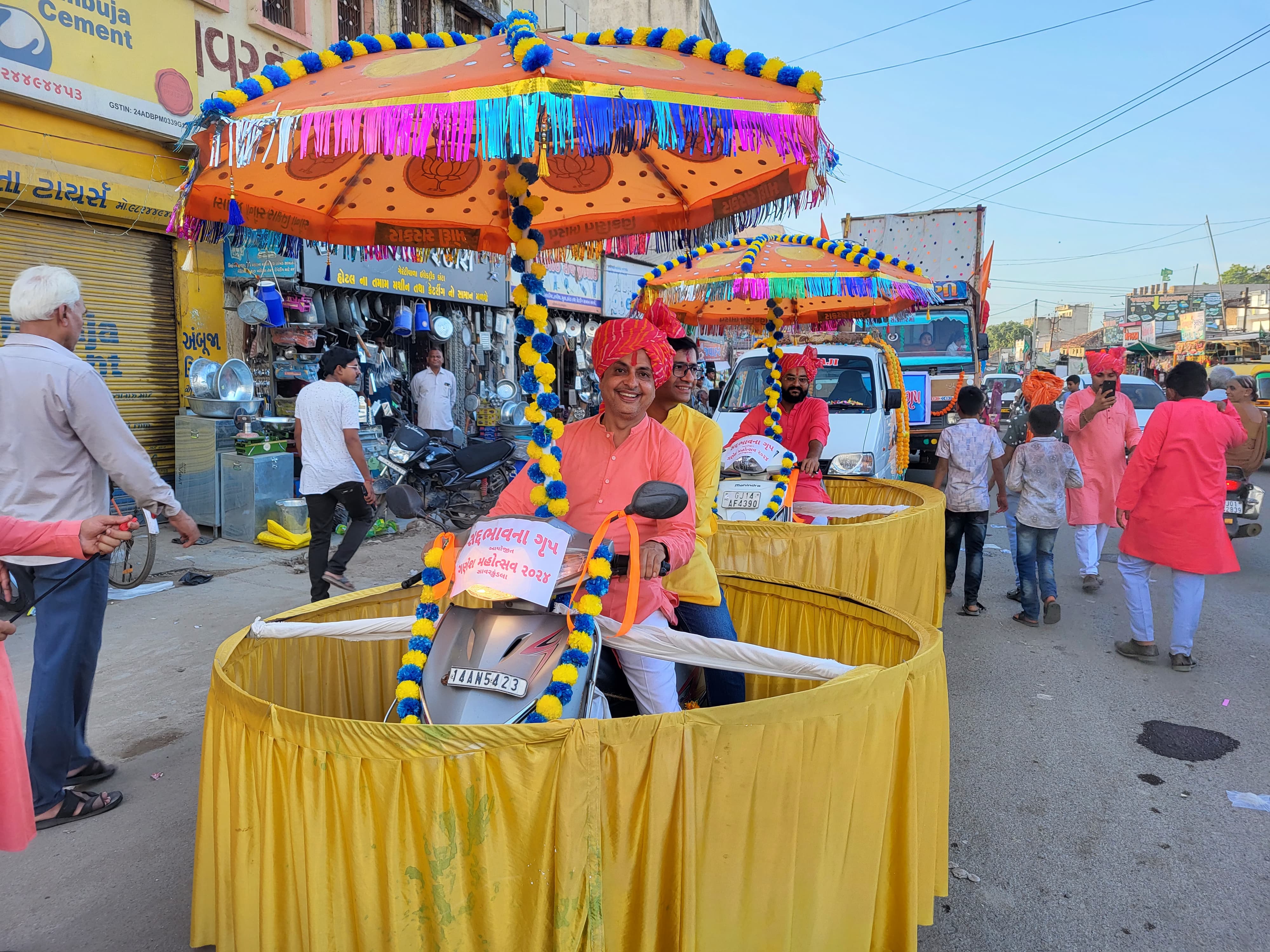 શ્રી ગણપતિ દાદાની અસીમ કૃપા અને પ. પૂ. ઉષામૈયાના આશીર્વાદ સાથે સાવરકુંડલા શહેરના સદભાવના ગ્રુપ આયોજિત ગણેશોત્સવની ઉજવણી અંતર્ગત આજરોજ પૂરી શ્રધ્ધા અને આસ્થા સાથે ગણપતિ દાદાની શાહી સવારી સાથે દબદબાભેર આગમન થયું એ નિમિત્તે ભવ્ય શોભાયાત્રા નીકળી.