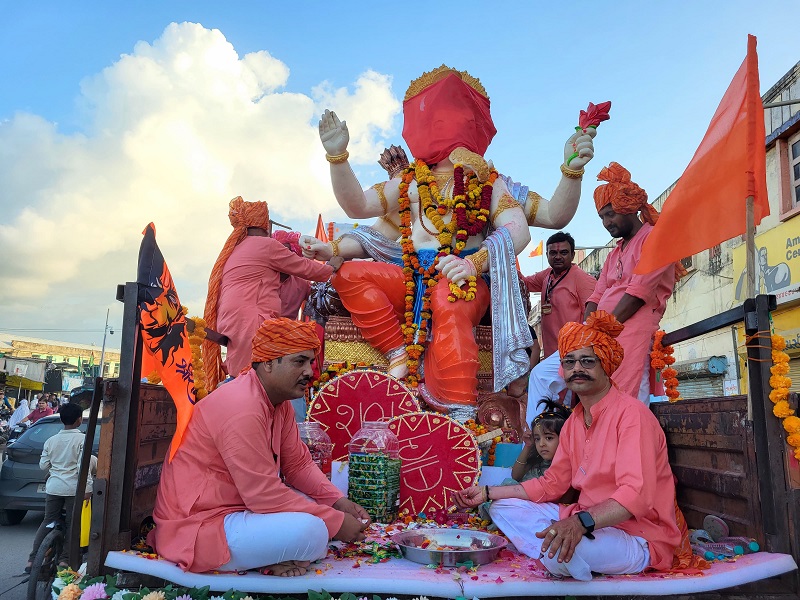 આ શોભાયાત્રા શહેરના મુખ્ય માર્ગો પર ફરી હતી શહેરમાં ઠેર ઠેર ગણપતિ બાપાને સત્કારવા માટે ભાવિકજનોની ભારે ભીડ જોવા મળી હતી.