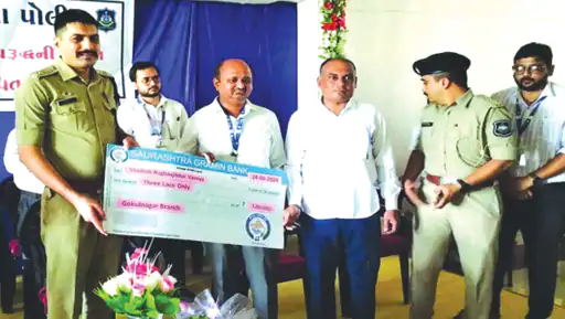 જેમાં શૈલેષભાઇ રાઘવજીભાઇ વસોયાને સૌરાષ્ટ્ર ગ્રામિણ બેંક તરફથી રૂપિયા રૂા.300000 નો ચેક, રઘુવીરભાઇ ભીખુભાઇ ગોહિલને સૌરાષ્ટ્ર ગ્રામિણ બેંક તરફથી રૂા.220000, રાજુભાઇ હિરાભાઇ પરમારને સૌરાષ્ટ્ર ગ્રામિણ બેંક તરફથી રૂા.297000, દિપભાઇ પાલાભાઇ માતંગને સૌરાષ્ટ્ર ગ્રામિણ બેંક તરફથી રૂા.297000, સોનિયાબેન ભરતભાઇ ખાનિયાને સૌરાષ્ટ્ર ગ્રામિણ બેંક તરફથી રૂા.50,000, શોયબઅખ્તર શોકતઅલી કેરને સૌરાષ્ટ્ર ગ્રામિણ બેંક તરફથી રૂા.1,15000, અયુબભાઇ હાજીભાઇ ભગાડને સૌરાષ્ટ્ર ગ્રામિણ બેંક તરફથી રૂા.1,15,000 ના એક અપાયા હતાં. આમ કુલ રૂા.13.94 લાખના ચેક અર્પણ કરાયા હતાં