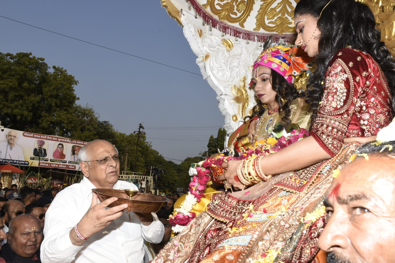 મુખ્યમંત્રી શ્રી ભુપેન્દ્રભાઈ પટેલ આજે રાજકોટના ગોંડલ ખાતે તુલસી વિવાહના ભવ્ય આયોજનમાં સહભાગી થયા હતા. આ પ્રસંગે યોજાયેલા જાજરમાન કાર્યક્રમમાં મુખ્યમંત્રીશ્રીએ કોલેજ ચોક ખાતે ઠાકોરજીના વરઘોડાનું ભાવપૂર્વક સ્વાગત કર્યું હતું.