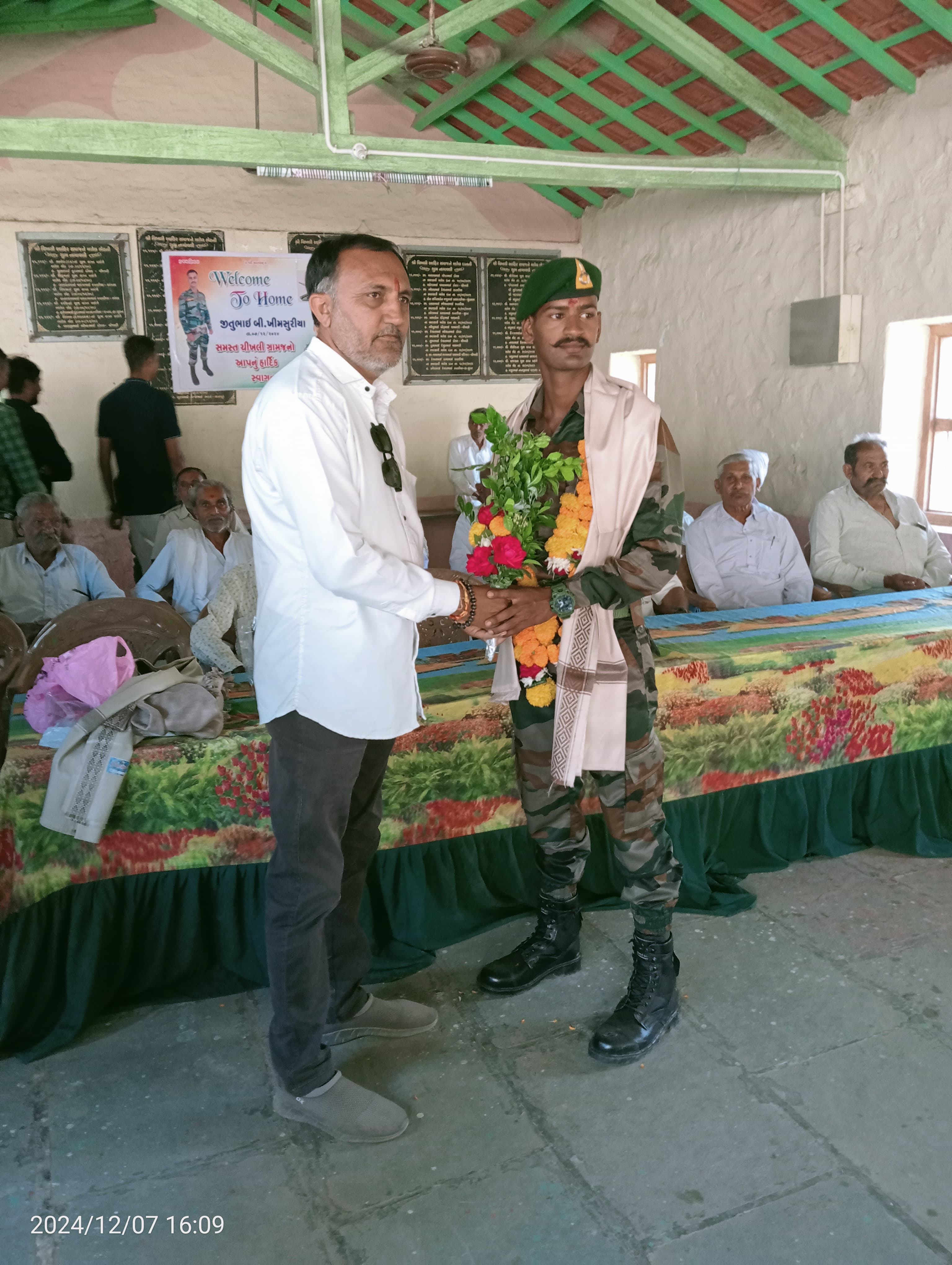 દેશને માટે કંઈક કરી છૂટવાની ભાવના ધરાવતા આયુવાન સમાજને આગળ ભણી અને આર્મીમાં જોઈન્ટ કરવા યુવાઓને આહવાન કરવામાં આવેલ . સરપંચ તેમજ ગામના વડીલો દ્વારા શાલ ઓઢાડીને સન્માન પત્ર આપી સન્માનિત કરવામાં આવેલ. એમ અનિરુદ્ધ ત્રિવેદીએ એક યાદીમાં જણાવ્યું હતું