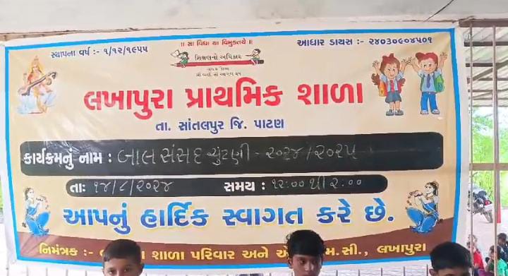 પાટણ જિલ્લાના સાંતલપુર તાલુકાના લખાપુરા પ્રાથમિક શાળા ખાતે બાલ સાંસદની ચુંટણી નું ડીજીટલ આયોજન કરવામાં આવ્યું હતું.જેમાં શાળા ના ૮ બાળકો એ ઉમેદવારી નોંધાવી હતી.આ ચુંટણીની ખાસિયત એ હતી કે સંપૂર્ણ આયોજન ચુસ્ત શિસ્ત બધ્ધ ચુંટણી હતી.જેમાં તમામ પોલીંગ સ્ટાફ અને પોલીસ સ્ટાફની નિમણુક કરવામાં આવી.તદ ઉપરાંત ઉમેદવારને પોતાના ચિહ્નો આપવામાં આવ્યા હતા. અને ચુંટણી પ્રચાર કરવા માટે સમય પણ આપવામાં આવ્યો હતો.બીજું કે તમામ પોલીંગ સ્ટાફ ને બાળકો ની મતદાર યાદી આપવામાં આવી અને પુરાવા તરીકે આધાર કાર્ડ થી જ મતદાન કરી શકશે એવું આયોજન કરવામાં આવ્યું હતું.