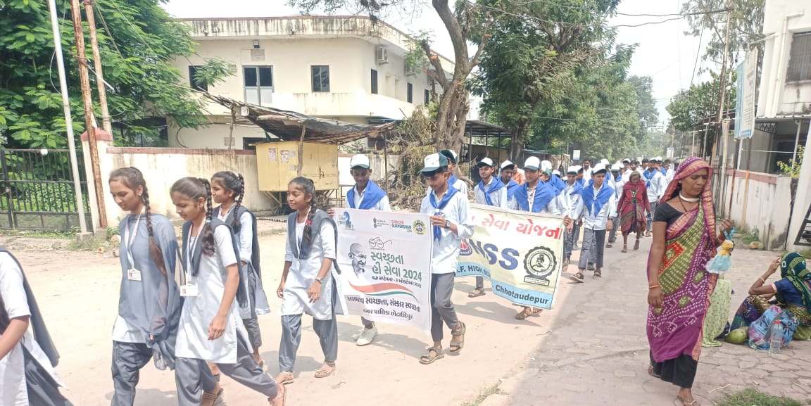 છોટાઉદેપુર નગર પાલિકા દ્વારા એસ.એફ.હાઇસ્કુલ છોટાઉદેપુરના સહયોગથી સ્વચ્છતા હિ સેવા ૨૦૨૪ અંતર્ગત આજે બીજા દિવસે સ્વચ્છતા માટે લોકોમાં જાગૃતા આવે તે માટે એક રેલીનું નગરમાં આયોજન કરવામાં આવ્યું હતું.
