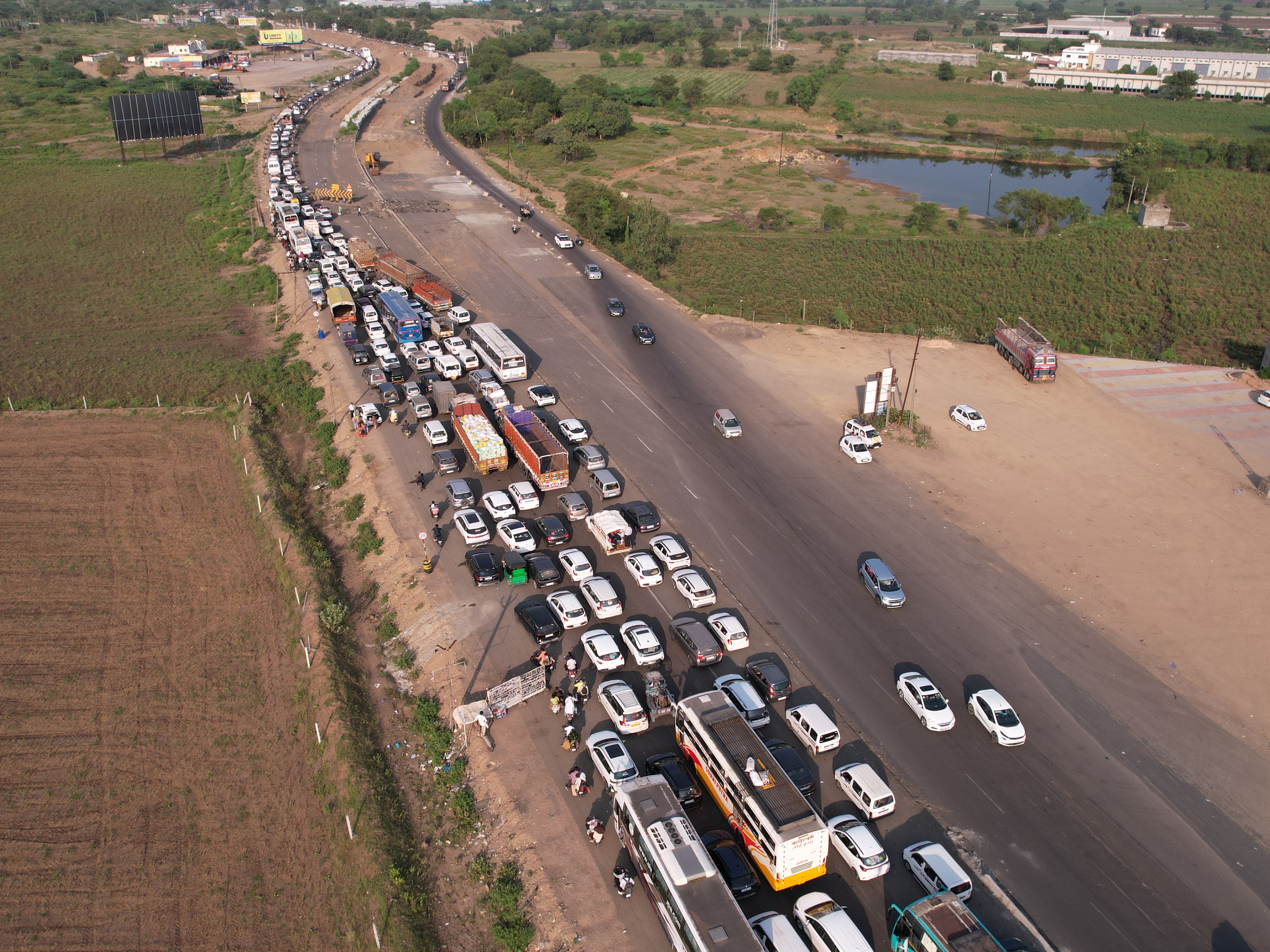 રાજકોટ-જેતપુર નેશનલ હાઈવે પરનો નજારો આપણે જોઈએ તો જાણવા મળશે કે ઘણા ખરા પ્રવાસીઓને કહેવું એવું થઈ રહ્યું છે કે, પોલીસ સ્ટાફ ના હોવાને કારણે ટ્રાફિક સર્જાય છે પણ હકીકત કંઈક એવી છે કે રાજકોટ-જેતપુર નેશનલ હાઇવે પર સિક્સલેનની કામગીરીને લઈને જે હાઇવે પરના રસ્તાઓ હાઇવે કોન્ટ્રાક્ટ દ્વારા સાંકડા કરી દેવામાં આવ્યા છે