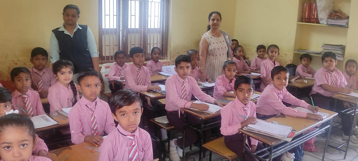 શાળા સ્ટાફ અને ટ્રસ્ટીઓ દ્વારા બાળકોને તિલક અને મોં મીઠું કરાવ્યું.