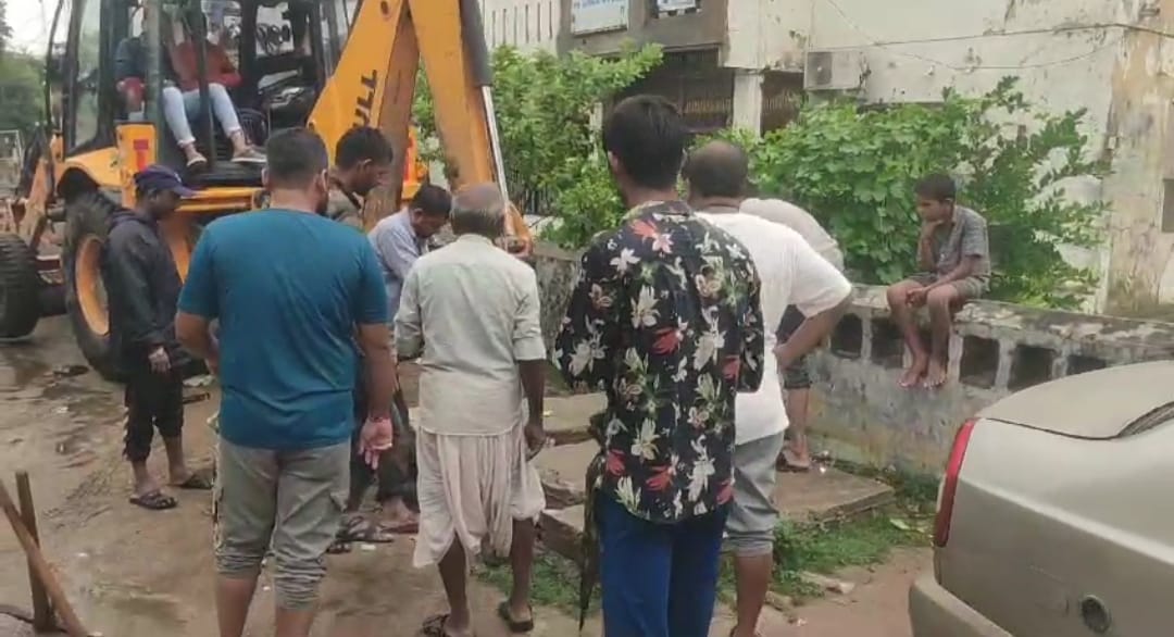 ચીફ ઓફિસર, એન્જિનિયર અને સ્ટાફે જેસીબી મશીન ની મદદથી પાણી નિકાલ ની કામગીરી હાથ ધરી..