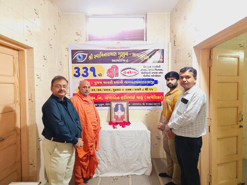 શ્રી સ્વામીનારાયણ ગુરુકુળ સાવરકુંડલા દ્વારા મોતિયાના દર્દથી પીડાતા દર્દઓને ધ્યાનમાં રાખી તા- ૬-૯-૨૪ના રોજ શાસ્ત્રી સ્વામી જ્ઞાનપ્રસાદદાસજીની પાવન સ્મૃતિમાં ૩૩૧મા નેત્રકેમ્પનું આયોજન કરવામાં આવ્યું હતુ જેમાં વિરનગર હોસ્પિટલના સુપર એ સ્પેશ્યાલીસ્ટ ડોકટરો દ્વારા ૧૬૭ જેટલા મોતિયાના દર્દીઓની તપાસ કરવામાં આવી, જેમાંથી કુલ ૨૧ જેટલા દર્દીઓને મોતિયાના ઓપરેશનની જરૂર હોય એમને સંસ્થા દ્વારા વિનામૂલ્યે ઓપરેશન તેમજ સારવાર આપવામાં આવી હતી અને જે દર્દીઓને ચશ્મા અને દવાઓની જરૂર હતી એમને સંસ્થા દ્વારા વિનામૂલ્યે ચશ્મા તેમજ દવાઓ પૂરી પાડવામાં આવી હતી આ નેત્રકેમ્પના યજમાન પદે – અ.ની. ચંપાબેન હરીભાઈ મારુ – ( અમેરિકા ) રહ્યા હતા.