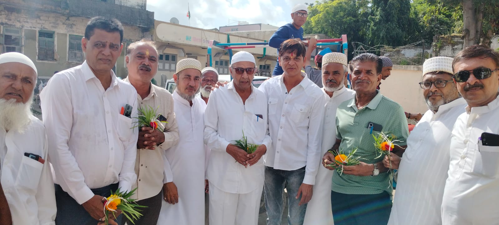 જુલુસ જૂનું પોલીસ સ્ટેશન (ગઢ)થી પ્રસ્થાન થતા પૂર્વે સુન્ની મુસ્લિમ જમાત પ્રમુખ નાસિરભાઈ મેતર, ગફારભાઈ ભોર, સિરાજભાઈ માડકિયા, અલીભાઈ, ગફારભાઈ વડગામા, આસિફ કાદરી એ શોભાયાત્રામાં જોડાયેલ કરસનભાઈ વાડદોરીયા, ધીરુભાઈ રીબડીયા, વરિષ્ઠ પત્રકાર સી.વી.જોશી, રમણીકભાઈ દુધાત, રાજેશભાઈ રીબડીયા, વિપુલભાઈ કાવાણી, નરેન્દ્રભાઈ કોટીલાને પુષ્પગુચ્છ અર્પણ કરી સન્માનિત કરેલ.