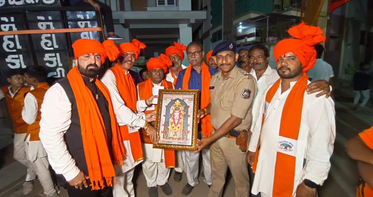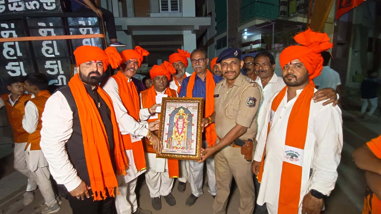 કેસરીયા સાફામાં સજ્જ બજરંગીઓ દ્વારા જય જય શ્રીરામ ના નારાઓથી નગર ગુંજી ઉઠ્યુ
