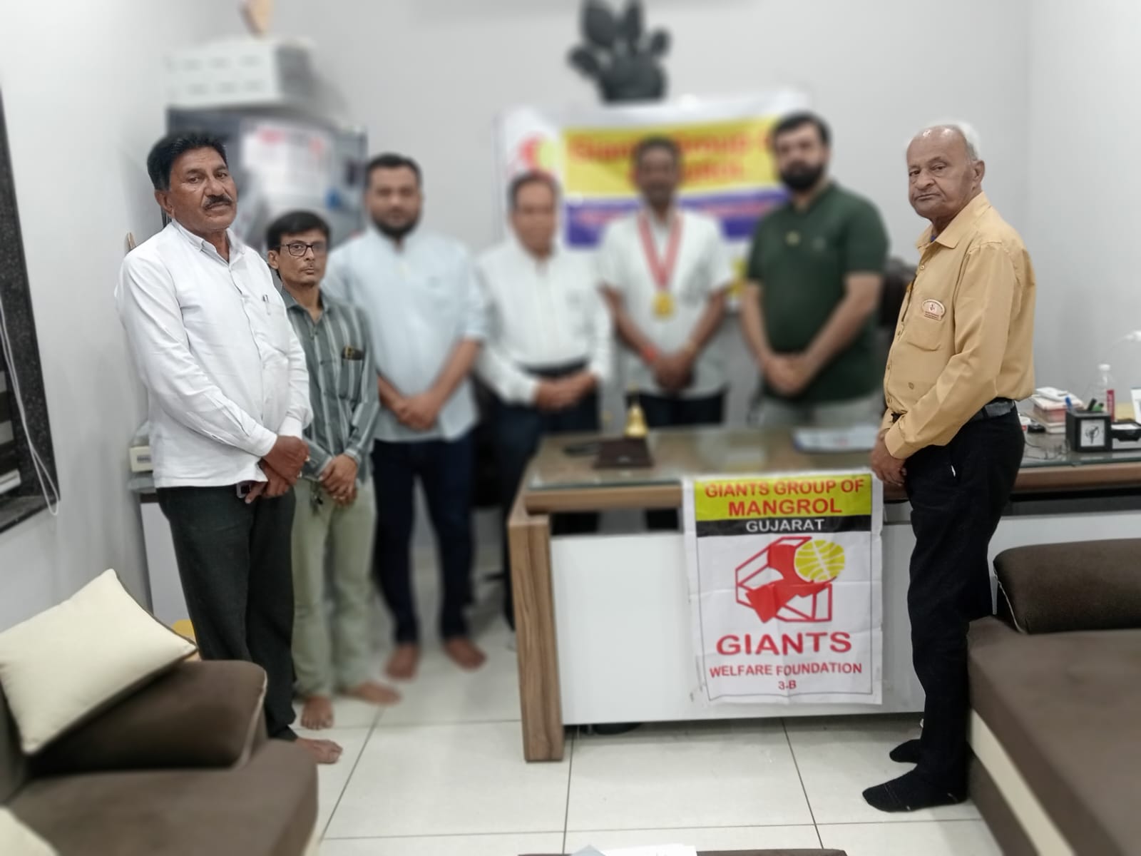 રાષ્ટ્રીય સેવા સંસ્થા જાયન્ટસ ગ્રુપ ઓફ માંગરોલ નાં 2024નાં નવા વરાયેલા હોદ્દેદારો નો શપથ વિધિ કાર્યક્રમ ગોપાલ કૃષ્ણ  ગૌશાળા ખાતે યોજાઇ ગયો કાર્યક્રમ નાં પ્રારંભે ડી  એ પંકજભાઇ રાજપરા એ ગત વરસ ની પ્રવૃતિ ની માહિતી આપી હતી યુનિટ ડાયરેક્ટર ગુણવંતભાઈ સુખાનદિએ નવા વરાયેલ હોદ્દેદારો V.P. છગનભાઈ  પરમાર,  ડી એ.પંકજભાઈ રાજપરા ડી. એફ. નિલેશભાઈ રાજપરા ને હોદ્દાના શપથ લેવડાવ્યા હતા ત્યારબાદ નવ નિયુક્ત પ્રમુખ કિશનભાઇ પરમાર એડવોકેટ ને શપથ લેવડાવવામાં આવ્યા હતા પાસ્ટ પ્રેસિડેન્ટ લીનેશભાઈ સોમૈયા એ પ્રમુખ કિશનભાઇ ને પ્રેસિડેન્ટ બેઝ પહેરાવી અભિનંદન પાઠવ્યા હતા