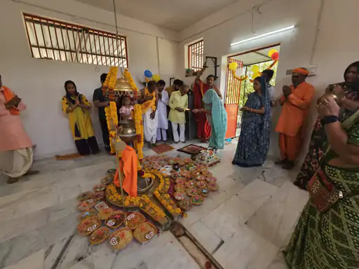 અંબાજી મંદિરના વિદ્વાન બ્રાહ્મણોની હાજરીમાં પૂજા અર્ચના શાસ્ત્રોક્ત વિધિ વિધાનથી શરૂ કરાઈ હતી. દીપકભાઈ જોશી અને તેમનો પરિવાર પૂજામાં જોડાયો હતો.