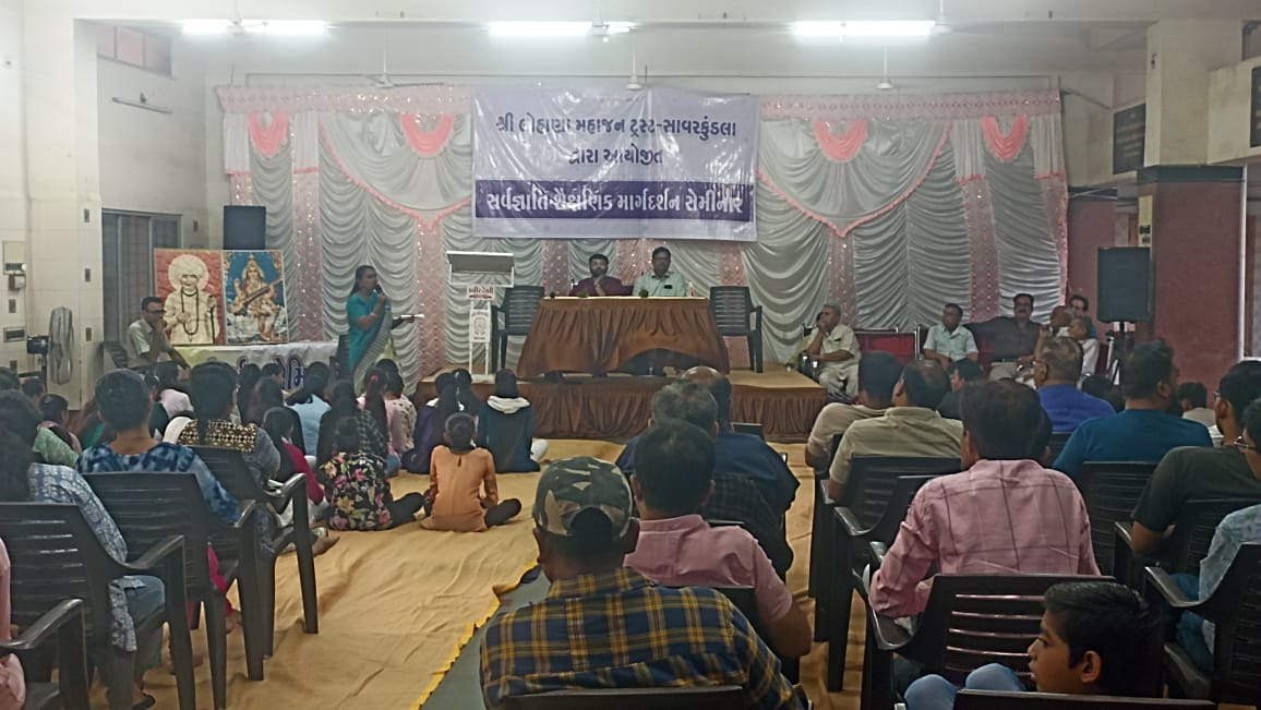 યોગ્ય દિશામાં તકાયેલું તીર જ મત્સ્યવેધ કરી શકે છે એ સૂત્રને ચરિતાર્થ કરતો સાવરકુંડલા નાવલી નદી કાંઠે સ્થિત લોહાણા મહાજન વાડી ખાતે લોહાણા મહાજન ટ્રસ્ટ સાવરકુંડલા દ્વારા સર્વ જ્ઞાતિ માટે નિઃશુલ્ક શૈક્ષણિક માર્ગદર્શન સેમીનાર યોજાયો હતો.. આજના યુગમાં જ્ઞાન એ જ શક્તિ અને આજીવિકા માટે એક અમોઘ શસ્ત્ર સમું કાર્ય કરે છે. સાંપ્રત બદલતી વૈશ્વિક પરિમાણોમાં શિક્ષણનું મહત્વ દિનપ્રતિદિન વધી રહ્યું છે.