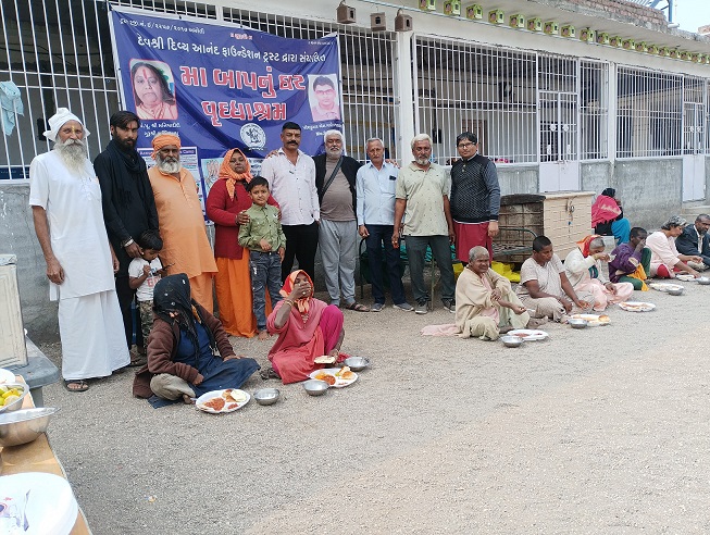સાવરકુંડલા માઁ બાપનુ ઘર વૃધ્ધાશ્રમ ખાતેના વૃધ્ધો, નિરાધરો અને મનોરોગીઓને પુણ્યતિથિ નિમિતે મહાપ્રસાદ અર્પણ કરવામાં આવ્યો
