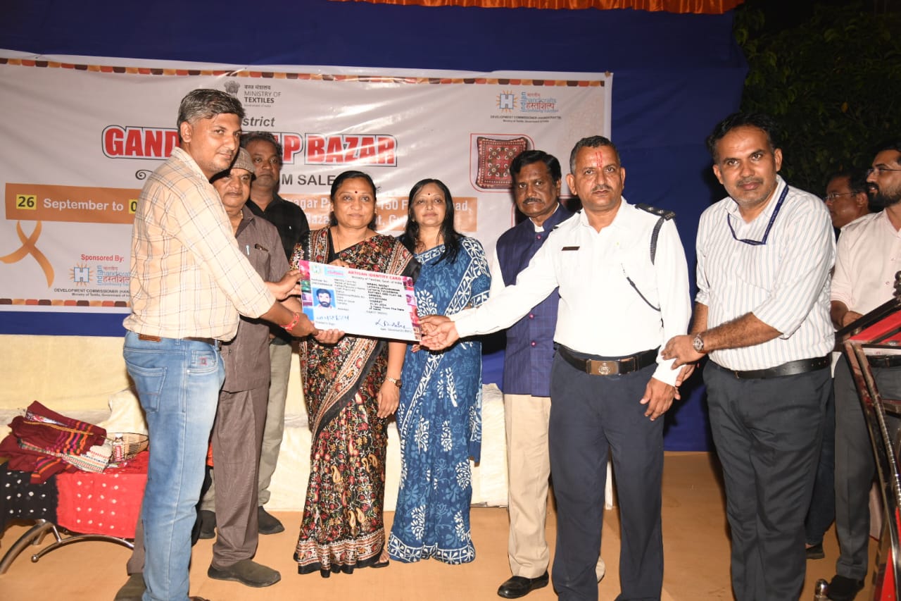 રાજકોટ મેયરશ્રી નયનાબેન પેઢડીયાના હસ્તે અમૃત સાગર પાર્ટી પ્લોટ ખાતે આયોજીત ‘ગાંધી શિલ્પ બજાર’નું ઉદઘાટન કરાયું હતું. રાષ્ટ્રના શ્રેષ્ઠ કારીગરો દ્વારા બનાવેલ હસ્તશિલ્પની તથા હસ્તકલાની ઉત્કૃષ્ટ વસ્તુઓના ૫૦ સ્ટોલનું એક્ઝિબિશન તા.૨૬ સપ્ટેમ્બરથી ૨ ઓકટોબર યોજાઈ રહ્યું છે.