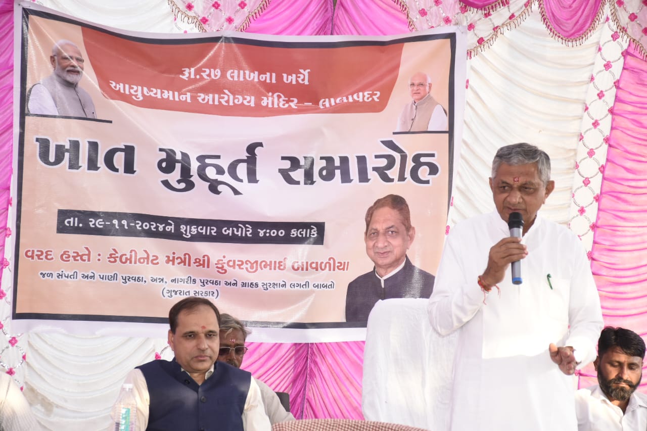 મંત્રી શ્રી કુંવરજીભાઈ બાવળીયાએ લાલાવદર ખાતે પેટા આરોગ્ય કેન્દ્રના ખાતમુહૂર્ત પ્રસંગે લોકોને સંબોધતા કહ્યું હતું કે, આશરે રૂ. ૨૭.૨૮ લાખના ખર્ચે તૈયાર થનારા આ પેટા આરોગ્ય કેન્દ્રમાં પ્રાથમિક સ્તરની તમામ આરોગ્ય સારવાર મળશે.