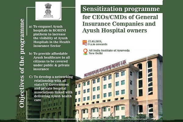 આયુષ મંત્રાલય સામાન્ય વીમા કંપનીઓ અને આયુષ હોસ્પિટલ માલિકો માટે સંવેદના કાર્યક્રમનું આયોજન કરશે