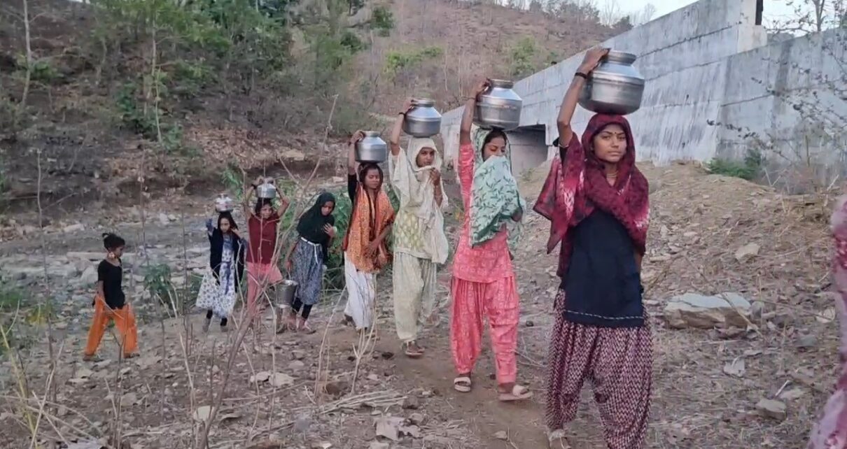 તો કેટલાક લોકો સ્નાન પણ કરી રહ્યા હતા… જ પાણી પીવાના પાણી માટે પણ લઈ જઈ રહી હતી. કોતરમા જે પાણી હાલ વહી રહ્યું છે… જે લીલ  વાળું છે છતાં પીવા ના પાણી માટે આ લોકો ઉપયોગ કરી રહ્યા છે.ગામના લોકો નું કહેવું છે કે આ અમારી મજબૂરી છે. વેરી ખોદી નેંજે થોડું પાણી મેળવ્યું છે તે એક કિમી દૂર આવેલા તેમના  મકાન સુધી કેવા રસ્તા પર થી પસાર થઈ રહી છે. તે જોતા કોઈ ને પણ અરેરાટી આવે જાય