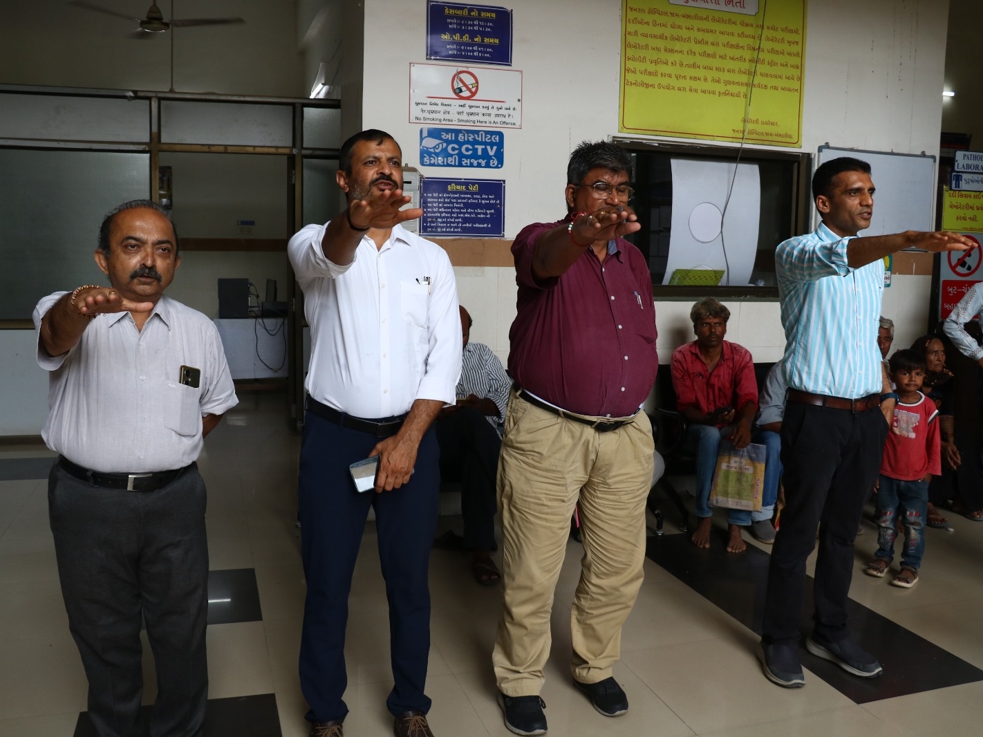 આ સાથે વિશ્વ રક્તદાતા દિવસની ઉજવણી નિમિત્તે ખંભાળિયાની સરકારી હોસ્પિટલ ખાતે મુખ્ય જિલ્લા આરોગ્ય અધિકારી, સુપ્રિટેન્ડેન્ટ, આર.એમ.ઓ. વગેરેની ઉપસ્થિતિમાં વિશ્વ રક્તદાતા દિવસ નિમિત્તે પરિવાર, મિત્રો, સગા, સંબંધીઓ, સહયોગીઓ અને જનતાને નિયમિત સ્વૈચ્છિક રક્તદાનની આવશ્યકતા વિશે લોકોમાં જાગૃકતા ફેલાવવા, કોઇ પણ લોભ, લાલચ વગર, જાતિ અને ધર્મના ભેદભાવથી મુક્ત થઇને રક્તદાન કરવા અંગેના શપથ ગ્રહણ કરવામાં આવ્યા હતા.