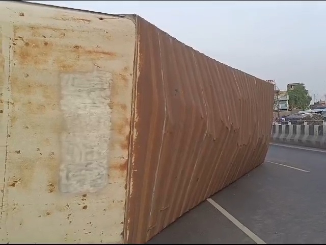 સુરતના કામરેજ તાલુકાના ખોલવડ નજીક કન્ટેનર પલટી મારી ગયું હતું. ટાયર ફાટતાં પલટી મારી ગયેલા કન્ટેનરને લઇને એક બાજુનો હાઇવે બ્લોક થઇ જતાં સુરત જિલ્લા ટ્રાફિક પોલીસ અને NHAI વિભાગની ટીમ તાત્કાલિક સ્થળ પર દોડી ગઈ હતી અને કન્ટેનર હાઈવેની સાઈડમાં ખસેડવાની કામગીરી હાથ ધરવામાં આવી હતી.