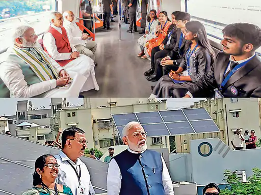 ગુજરાતની મુલાકાતે આવેલા વડાપ્રધાન નરેન્દ્ર મોદીએ સોમવારે રાજ્યને સમર્પિત અમદાવાદ-ગાંધીનગર મેટ્રો ટ્રેન, ભુજ-અમદાવાદ નમો ભારત રેપિડ રેલ, આવાસીય યોજનાઓ સહિતના પ્રોજેક્ટ શરૂ કરાવ્યા હતા. સતત ત્રીજી ટર્મ માટે દેશમાં ચૂંટાઇ આવેલી મોદીના નેતૃત્વવાળી એનડીએ સરકારે સોમવારે 100 દિવસ પૂર્ણ કર્યાં છે. આ 100 દિવસ દરમિયાન મોદી સરકારે દેશમાં કુલ 15 લાખ કરોડ રૂપિયાના કામો કર્યાં છે.