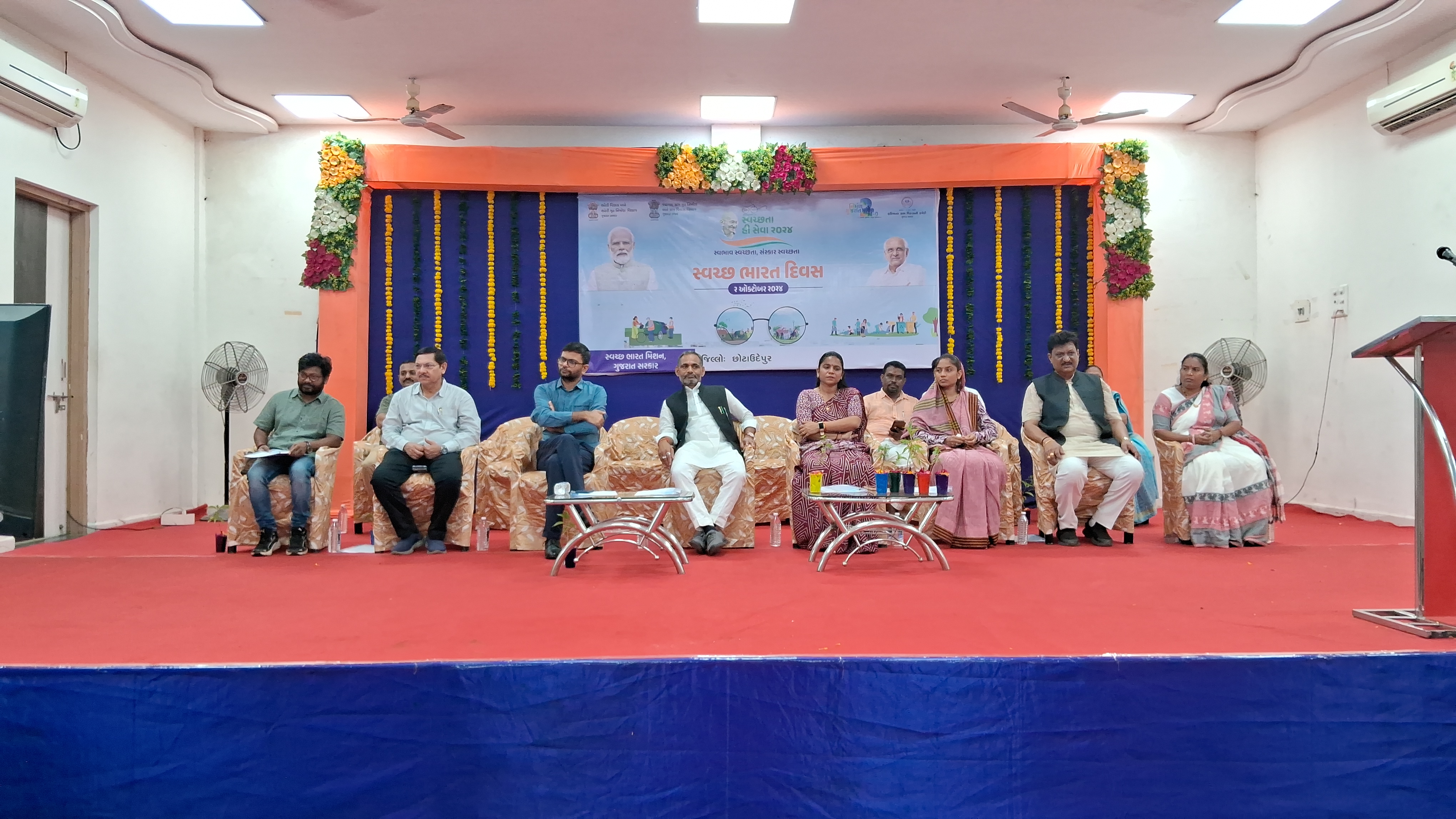 તા. 2.10.24ના રોજ સ્વચ્છ ભારત દિવસની ઉજવણી કાર્યક્રમ છોટાઉદેપુર નગરના દરબાર હોલ ખાતે યોજાયો હતો. જેમાં મુખ્ય મહેમાન સાંસદ જશુભાઈ રાઠવા , જિલ્લા પંચાયત પ્રમુખ મલકાબેન પટેલ, જિલ્લા કલેક્ટર , જિલ્લા વિકાસ અધિકારી સાથે અધિકારીઓ અને પદાધિકારીઓ હાજર રહ્યા હતા. સાંસદે દેશના વડાપ્રધાન નરેન્દ્રભાઈ મોદીના સ્વચ્છતા અભિયાનને ૧૦ વર્ષ પૂર્ણ થતા સ્વચ્છતા અભિયાન થકી મેળવેલ સિદ્ધિઓ અંગે વાત કરી જીવનમાં સ્વચ્છતાનું મહત્ત્વ અંગે પ્રાસંગિક પ્રવચન આપ્યું હતું.