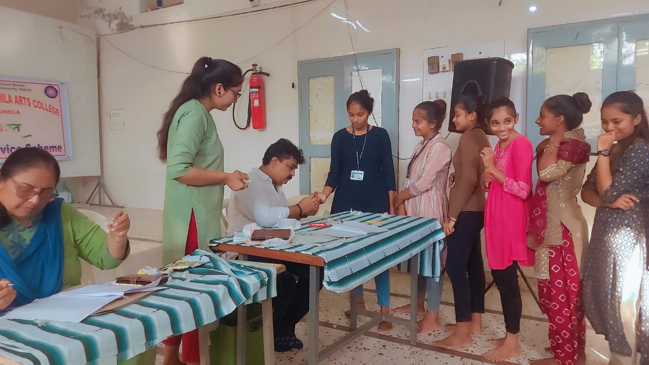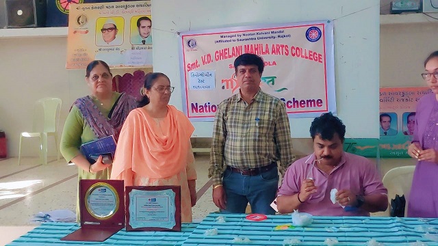 તારીખ ૧૫-૧૦-૨૪ થી ૧૬-૧૦-૨૪ દરમિયાન શ્રી નુતન કેળવણી મંડળ સંચાલિત શ્રીમતી વી.ડી.ઘેલાણી મહિલા આર્ટસ કોલેજમાં “વિકાસ સપ્તાહ” અંતર્ગત હિમોગ્લોબીન ટેસ્ટનું આયોજન કરાયું, જેમાં રેડક્રોસ સોસાયટીના સેક્રેટરી મેહુલભાઈ વ્યાસ તથા ઊર્મિબેન મકવાણાએ કુલ ૧૨૭ બહેનોનો હિમોગ્લોબીન ટેસ્ટ કર્યો. મેહુલભાઈ વ્યાસે તથા પ્રા.ડો . રુક્સાનાબેન કુરેશીએ આ કાર્યક્રમ સ્પોન્સર કર્યો. કાર્યક્રમના સંયોજક તરીકે પ્રા. છાયાબેન શાહે ભૂમિકા ભજવી.