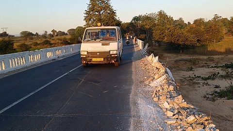 નેશનલ હાઇવેના બ્રિજ ઉપર પેરાફીટ દીવાલ ધરાશાય, બે દિવસ અગાઉ દેવહાટ ગામ નજીક બ્રિજની પેરાફીટ દીવાલ ૫૦ ફૂટ જેટલી તૂટી