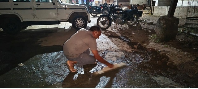 સાવરકુંડલા શિવાજી નગર શેરી નં-૧, માં જે લગભગ ત્રણેક વર્ષથી આખા રોડની વચ્ચે જે ૨-ખાડા(૨-કડ) હતા અને હમણાં જે કેમેરા લગાડીને ત્રીજો ખાડો કરેલ તે રીપેર કરવાનું અવાર-નવાર ઘણીવાર રજુઆત કરેલ પણ આજ દિવસ સુધી કોઈ થી જે કામ ન થયું તે છેવટે ગય કાલે નગરપાલિકા પુર્વ પ્રમુખ અને હજી પણ અડધી રાતે જેનામાં કામ કરાવવા ની આવડત છે