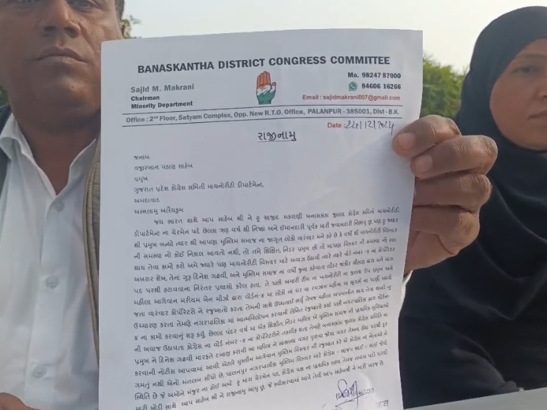 જેવા અનેક આક્ષેપો સાથે માઈનોરિટી સેલના પ્રમુખ સાજીદ મકરાણી, મહિલા પ્રમુખ મરિહમ મિર્ઝા સહિતના લોકોએ પોતાના પદ અને કોંગ્રેસના સભ્ય પદેથી રાજીનામું ધરી દેતા હડકંપ મચ્યો છે. જે માઈનોરિટી સમાજને કોંગ્રેસ પોતાની વોટબેંક ગણતું હતું. તે માઈનોરિટી સેલ જ બનાસકાંઠામાં અત્યારે તો કોંગ્રેસને ગુમાવવાનો વારો આવ્યો છે.