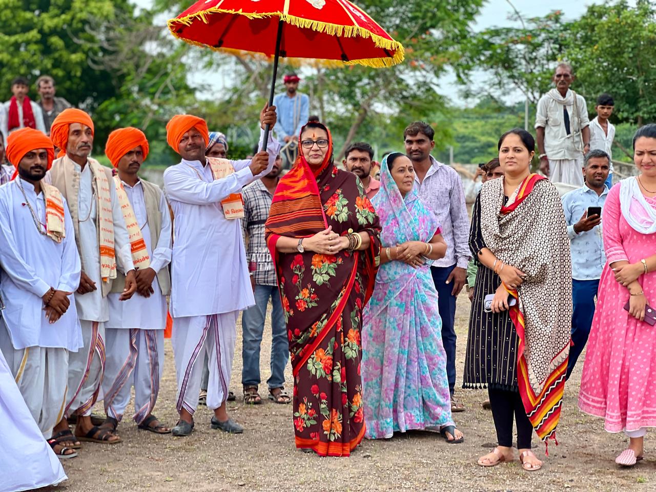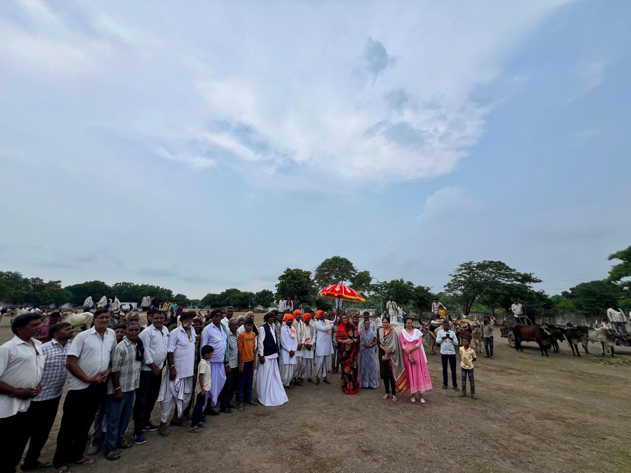 જગ્યા માંથી નાથીબાઈ માં ની દેરી સુધી વિશાળ સંખ્યામાં ગામ ના લોકો તેમજ સેવક સમુદાય ઢોલ સરનાઈ ના તાલે વાજતે ગાજતે બગી ઘોડા સાથે શોભાયાત્રા નીકળે છે જેમાં ભાતીગળ પોશાક મા રાસ ગરબા રમતા રમતા લોકો જાય છે અને ધજા ચડાવી ત્યારબાદ જગ્યા મા પરત આવી ભગવાન શ્રી રાધેવેન્દ્ર સરકાર અને ઠાકર વિહળાનાથ ના તેમજ ધજાગરા ના દર્શન કરી પૂજ્ય બા શ્રી અને બાળઠાકર પૂજ્ય શ્રી પૃથ્વીરાજ બાપુ તેમજ જગ્યા ના સંચાલક પૂજ્ય શ્રી ભયલુબાપુ ના ચરણો મા નમન કરી આશીર્વાદ તમામ ભાવિક ભક્તો લે છે ત્યાર બાદ તમામ ભાવિકો ભક્તો સેવકો ભોજન પ્રસાદ લે છે.