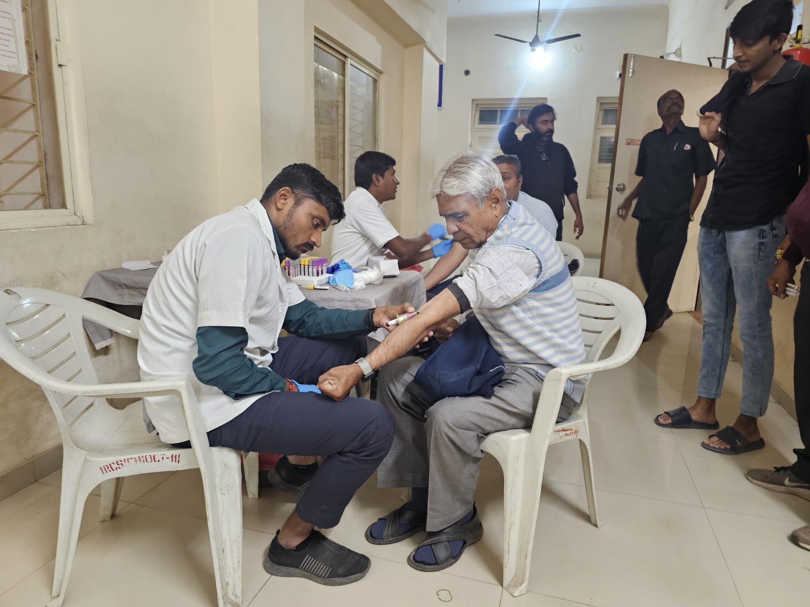 રાજકોટ શહેર તા.૯/૧૨/૨૦૨૪ ના રોજ પત્રકારત્વ ક્ષેત્રે નિરંતર વ્યસ્ત કામગીરી વચ્ચે સતત માનસિક તણાવ સાથે કામગીરી કરતા પત્રકાર મિત્રોની આરોગ્યની ખેવના રાજ્ય સરકાર સેવી રહી છે. મુખ્યમંત્રી ભુપેન્દ્રભાઈ પટેલના દિશા નિદર્શનમાં રાજ્યભરમાં પત્રકાર મિત્રો માટે હેલ્થ ચેકઅપ કેમ્પનું આયોજન કરવામાં આવી રહ્યું છે. જેના ઉપક્રમે રાજ્ય સરકાર અને રેડ ક્રોસ સોસાયટીના સંયુક્ત ઉપક્રમે રાજકોટ ખાતે ગત તા.૨૭ નવેમ્બરના રોજ મીડિયા કર્મીઓ માટે હેલ્થ ચેકઅપ કેમ્પનું આયોજન કરવામાં આવ્યું હતું. જેમાં બ્લડ ટેસ્ટ, એક્સ-રે, ECG અને ડેન્ટલ સહિતના સહિતના વિવિધ ટેસ્ટ વિનામૂલ્યે કરી આપવામાં આવ્યા હતાં, તેમજ રિપોર્ટના આધારે જરૂરી પ્રિકોશન અંગે તબીબ દ્વારા માર્ગદર્શન પૂરું પાડવામાં આવ્યું હતું. રાજકોટ ખાતે પ્રિન્ટ તેમજ ઈલિક્ટ્રોનિક મીડિયા સાથે બહોળી સંખ્યામાં પત્રકાર મિત્રો જોડાયેલા હોઈ વ્યવસ્થાના ભાગ રૂપે બાકી રહી ગયેલા મીડિયાકર્મીઓ માટે બીજા તબક્કાના કેમ્પનું ખાસ આયોજન ગઈકાલ ૮ ડીસેમ્બર રવિવારે હાથ ધરવામાં આવ્યું હતું. આ આયોજન હેઠળ બીજા તબક્કામાં આશરે ૭૫ થી વધુ પત્રકાર મિત્રો હેલ્થ કેમ્પમાં સહભાગી થયા હતાં જેઓના બ્લડ ટેસ્ટમાં CBC, સુગર, કોલેસ્ટ્રોલ, પ્રોટીનના ડીટેઇલ્ડ રિપોર્ટ્સ ઉપરાંત ECG અને ચેસ્ટનો એક્સ-રે અને દાંતની તપાસ પણ કરવામાં આવી હતી. આ કેમ્પમાં રેડક્રોસ રાજકોટ સંસ્થાના ચેરમેન ડૉ.દિપક પટેલ, સંયુક્ત માહિતી નિયામક મિતેષ મોડાસિયા, નાયબ માહિતી નિયામક પ્રશાંત ત્રિવેદી, સર્વે સહાયક માહિતી નિયામક, ઇલેક્ટ્રોનિક મીડિયા સંલગ્ન તંત્રીઓ, રિપોર્ટર, પ્રતિનિધિ, કેમેરામેન જોડાયા હતા. અને આ કેમ્પનો લાભ લીધો હતો.