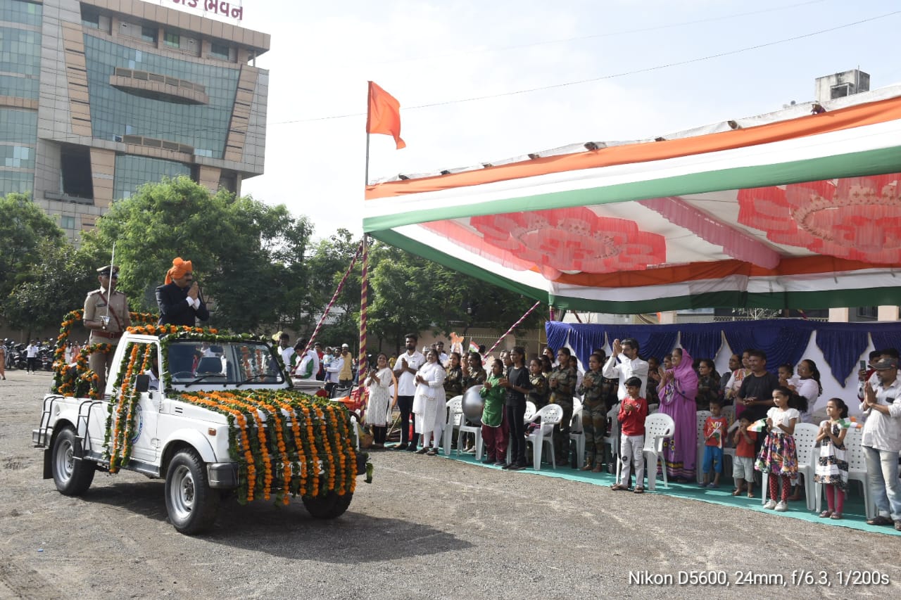 આ તકે સ્વાતંત્ર્ય દિવસની શુભેચ્છા પાઠવતા નિવાસી અધિક કલેક્ટરશ્રી ચેતન ગાંધીએ જણાવ્યું હતું કે, આઝાદી માટે દેશના અનેક નામી-અનામી વીર સપૂતોએ પોતાના પ્રાણોના બલિદાન આપ્યા હતા. આજનો દિવસ એ તમામ વીરસપૂતોને વંદન કરવાનો અવસર છે. આજે આઝાદીનો અમૃતકાળ ચાલી રહ્યો છે ત્યારે વડાપ્રધાનશ્રી નરેન્દ્રભાઈ મોદીએ ‘‘હર ઘર તિરંગા’’ અભિયાનના માધ્યમથી દેશવાસીઓમાં દેશભક્તિની ચેતના જગાવી છે. જેવી રીતે દેશની આઝાદીના સંઘર્ષમાં જન-જન જોડાયા હતા, તેવી જ રીતે દેશને વર્ષ ૨૦૪૭ સુધીમાં વિકસિત બનાવવા માટે પ્રતિબદ્ધ થવાનું છે.