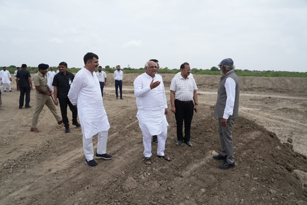 સુઇગામના કુંભારખા ખાતે મુખ્યમંત્રીશ્રી ભુપેન્દ્ર પટેલે નિર્માણાધિન હરે કૃષ્ણ સરોવર પ્રોજેક્ટની મુલાકાત લીધી