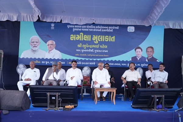 મુખ્યમંત્રીશ્રી ભુપેન્દ્ર પટેલે બનાસકાંઠા ના સરહદી સુઇગામ તાલુકાના કુંભારખા ગામે નિર્માણ થઈ રહેલ જળસંચયના મહત્વકાંક્ષી પ્રોજેક્ટ હરે કૃષ્ણ સરોવરની રવિવારે મુલાકાત લીધી હતી.
