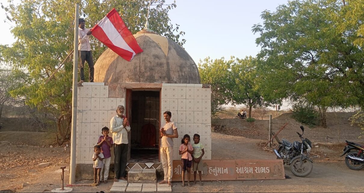 દામનગર :” દામનગર સહિત ગ્રામ્ય પંથકમાં શ્રી હનુમાનજી દાદાનાં જન્મોત્સવની આસ્થા અને ભક્તિ ભાવથી ઉજવણી કરાઈ.”. મર્યાદા પુરુષોત્તમ શ્રી રામ ભગવાનના પરમ સેવક – ભક્તશ્રી હનુમાનજી દાદાનાં જન્મોત્સવની ઉજવણી ગામે – ગામ કરવામાં આવી હતી. દામનગર થી માત્ર બે કી.મી.નાં અંતરે આવેલ લાઠી તાલુકાના રાભડા ગામની ભૂમિ ઉપર સ્થાપિત કરવામાં આવેલ તાત્કાલિક હનુમાનજી મંદિર ( આશ્રમ )માં આજે મંગળવારે હનુમાનજી દાદાનાં જન્મોત્સવના અવસર પર નૂતન ધ્વજા રોહણ કરવામાં આવેલ અને આ ગામના ભૂદેવ શ્રી અશોકભાઈ જોશીએ આરતી કરી દર્શને આવતા દર્શનાર્થીઓને પ્રસાદીનું વિતરણ કરવામાં આવ્યું હતું. આ આશ્રમ ( મંદિર ) ૪૦ વર્ષ પુરાણું છે. દામનગર – ભટવદર ગામ વચ્ચે આવેલ આ મંદિર ( આશ્રમ ) માં અહીથી પસાર થતા વાહન ચાલકો અને વટેમાર્ગુઓ તેમજ સાધુ – સંતો દર્શન કરવા અવશ્ય પધારે છે. ( તસ્વીર – નીતિન રાઠોડ. અહેવાલ = અતુલ શુક્લ દામનગર.)