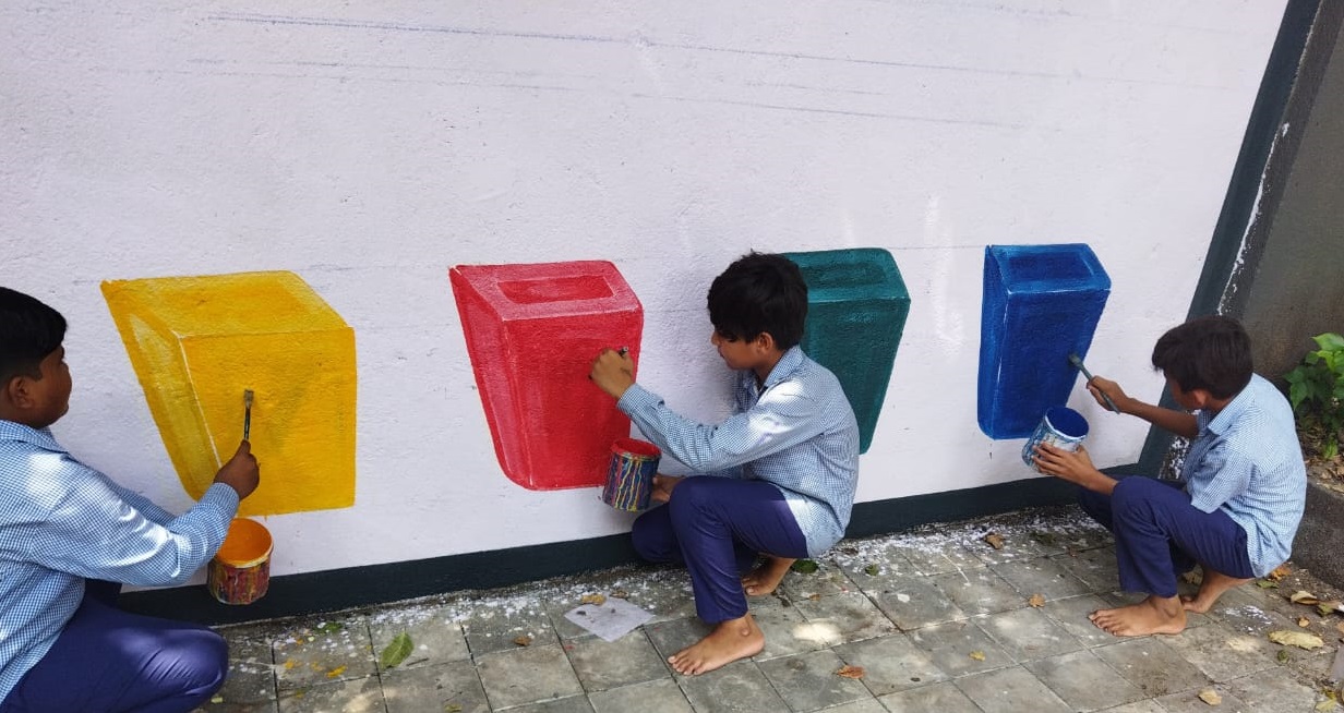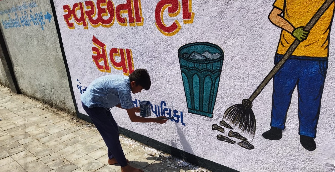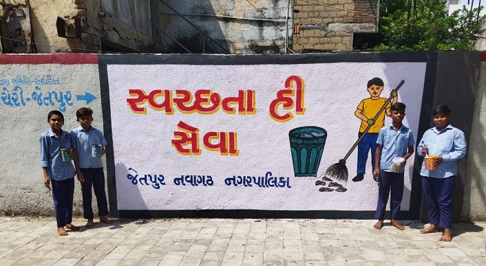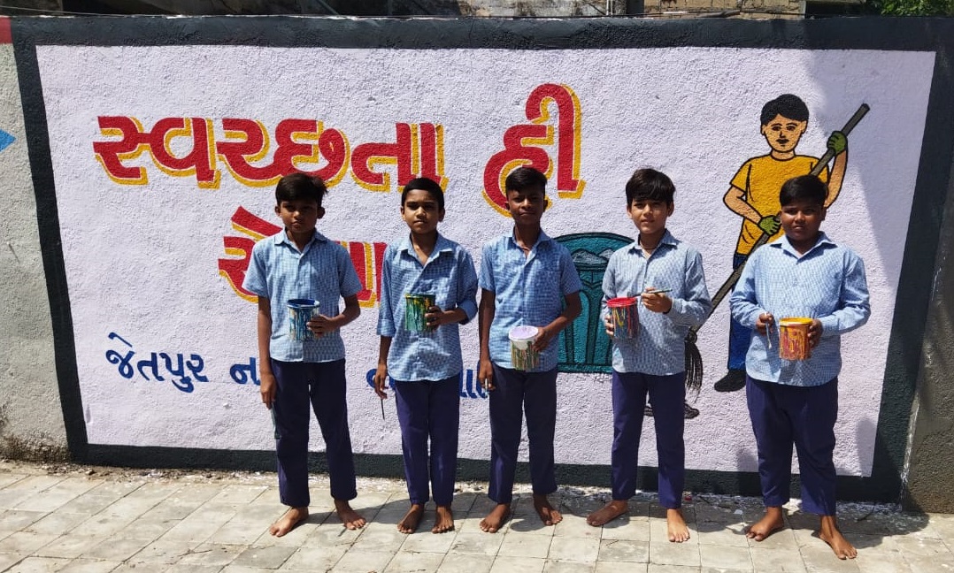 જેતપુરના નવાગઢમાં વોલ પેઈન્ટિંગ સાથે વિદ્યાર્થીઓએ આપ્યો ‘સ્વચ્છતાનો સંદેશ’