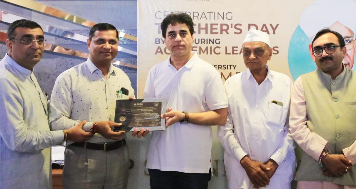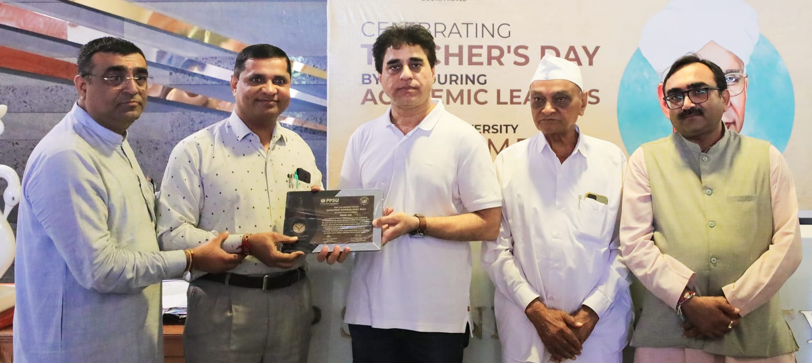 સુરતમાં પી.પી. સવાણી યુનિવર્સિટી અને લાઈફ મોલ્ડિંગ એકેડમીના સંયુક્ત ઉપક્રમે પ મી સપ્ટેમ્બર શિક્ષક દિવસની ઉજવણીના ભાગરૂપે 31 ઓગસ્ટ, શનિવારે યોજવામાં આવેલ ચારિત્ર નિર્માણ દ્વારા રાષ્ટ્ર નિર્માણ “આચાર્ય દેવો ભવ” મોટીવેશનલ કાર્યક્રમમાં શ્રીમદ્ ભાગવદ્ ગીતાજીનો પાઠ્યપુસ્તકમાં સમાવેશ કરવા બદલ શિક્ષણમંત્રીશ્રી પ્રફુલભાઈ પાનસેરીયાનું અભિવાદન કરવામાં આવ્યું. આ ત્રિવિધ કાર્યક્રમમાં સુરતના ઘણાબધા આદરપાત્ર આચાર્યોના અભિવાદન સાથે સુરત શહેર આચાર્ય સંઘના પ્રમુખશ્રી કિશોરકુમાર નર્મદાશંકર જાનીની તાજેતરમાં ગુજરાત રાજ્ય આચાર્ય મહામંડળમાં ઉપપ્રમુખ તરીકે વરણી થવા ઉપરાંત બહોળા પ્રમાણમાં નીડરપણે શિક્ષણના વિશાળ હિતમાં સુંદર કામગીરી કરી રહેલ હોય, શિક્ષણમંત્રીશ્રી પ્રફુલભાઈ પાનસેરીયા, પી.પી. સવાણી યુનિવર્સિટીના મોભી શ્રી વલ્લભભાઈ સવાણી અને પ્રોવોસ્ટ ડો. પરાગભાઈ સંઘાણી તથા લાઈફ મોલ્ડિંગ એકેડેમીના સ્થાપકશ્રી ડો. સંજયભાઈ ડુંગરાણીના વરદ હસ્તે સન્માન કરવામાં આવેલ છે.