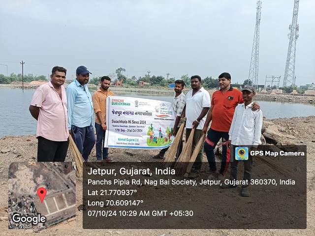 પ્રધાનમંત્રી નરેન્દ્રભાઈ મોદીની પ્રેરણા હેઠળ ગાંધી જયંતી નિમિતે સ્વચ્છતા હી સેવા અભિયાન અમલી બન્યું છે, જે અંતર્ગત જેતપુર નવાગઢ નગરપાલિકા દ્વારા સ્વછતા અભિયાન અન્વયે ગ્રામજનોએ સાથે મળીને મયુર તળાવની આસપાસ સફાઈ કરી હતી.લોકોએ પુરા સાથ સહકાર થકી તળાવમાં અને તળાવની આસપાસ રહેલ કચરો સાફ કરી અન્ય લોકોને પણ સ્વછતા જાળવવી જોઈએ તે અંગેનો સંદેશ પૂરો પાડ્યો હતો.