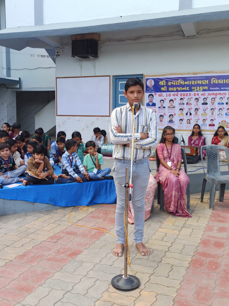 શાળાના શિક્ષકો દ્વારા સમગ્ર અધ્યનનું મૂલ્યાંકન કરવામાં આવેલ જેમાં દરેક ધોરણમાં પ્રથમ સ્થાન પ્રાપ્ત કરનાર વિદ્યાર્થિઓને ગુરુકુલ સંસ્થા દ્વારા  સન્માન પત્ર આપવામા આવશે. ગુરુકુલ સંસ્થાનાં વડા શાસ્ત્રી સ્વામી ભગવત સ્વામી, ગુરુકુલ સંસ્થાનાં પ્રમુખ શ્રી શાસ્ત્રી હરિપ્રસાદ સ્વામી તેમજ સંસ્થાનાં કોઠારી સ્વામી શ્રી અક્ષર મુકત સ્વામી શાળામાં આવી વિદ્યાર્થિઓને આશીર્વાદ આપેલ. સમગ્ર કાર્યક્રમનું આયોજન શાળાના આચાર્યશ્રી વ્યાસ સાહેબ, ઉપાચાર્ય શ્રી કૌશિકસર, વેકરિયાસર તથા તમામ શિક્ષકો દ્વારા કરવામાં આવેલ .