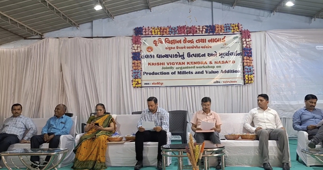 ભારતીય કૃષિ અનુસંધાન પરિષદ નવી દિલ્હી કૃષિ અને કલ્યાણ મંત્રાલય ભારત સરકાર દ્વારા દેશમાં સ્થાપિત કૃષિ વિજ્ઞાન કેન્દ્ર વિકાસ માટે કાર્યરત છે ત્યારે આંતર રાષ્ટ્રીય મીલેટસ્ વર્ષની ઉજવણી અંતર્ગત કૃષિ વિજ્ઞાન કેન્દ્ર મંગલ ભારતીઅને નાબાર્ડ ના સયુંકત ઉપક્રમે કચ્છી કડવા પટેલ સમાજ ની વાડી છોટા ઉદેપુર ખાતે આંતરરાષ્ટ્રીય મિલેટ્સ વર્ષની ઉજવણી અંતર્ગત ખેડૂત સેમિનાર અને વાનગી હરીફાઈ નો કાર્યક્રમ યોજાયો હતો, જેમાં મોટી સંખ્યામાં ખેડૂતો અને આંગણવાડી કાર્યકર બહેનો ઉપસ્થિત રહી મિલેટ્સ ધાન્ય પાકો ની ખેતી અને તેનાથી જળવાતી તંદુરસ્તી અંગે વિસ્તૃત જાણકારી આપવામાં આવી હતી.