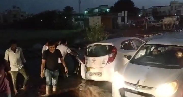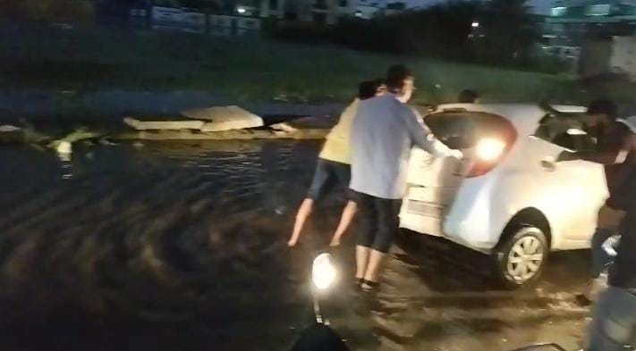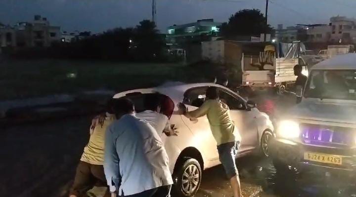 રાધનપુર શહેરમાં તાજેતરમાં જ આદર્શ હાઇસ્કુલ થી હાઇવે ચાર રસ્તાનાં માર્ગ પર વરસાદી પાણીનો જમાવડો હોવાને કારણે રસ્તા પરનો મોટો ખાડો ગાડી ચાલકને નહિ દેખાતા ગાડી ફસાઈ જવા પામી હતી.ત્યારે રાહદારીઓ અને અન્ય વાહનચાલકોની મદદે ભારે જહેમત બાદ ગાડીને બહાર કાઢી હતી ગાડી બહાર કાઢતા કાર ચાલકે રાહત નો દમ લીધો હતો.