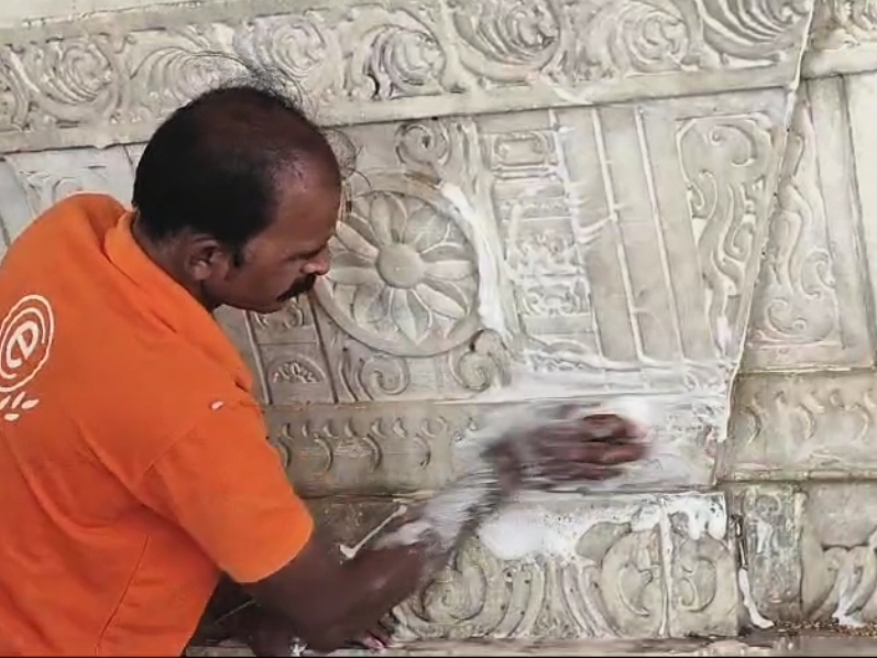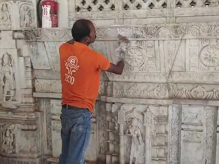 બરોડાની ઇકો ફેસેલિટી મેનેજમેન્ટ કંપની દ્વારા મંદિરના પીળા પડી ગયેલા આરસ પથ્થરોને ચમકાવાની કામગીરી શરૂ