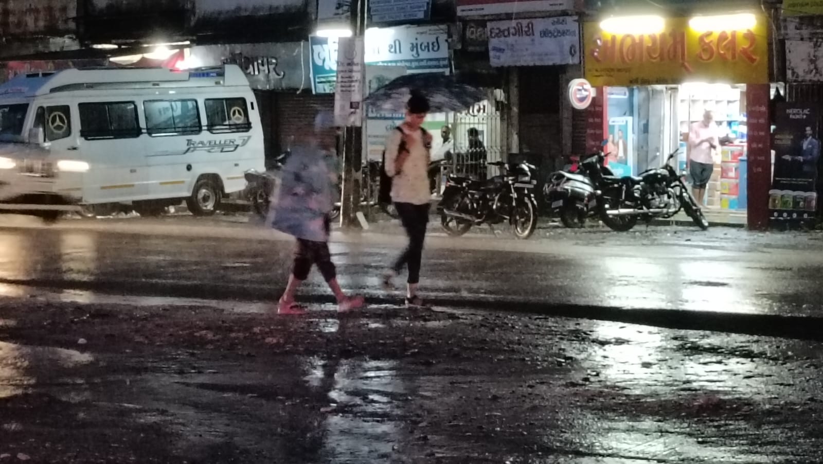 લાંબા સમયથી ભારે ગરમીના ઉકળાટ બાદ છેલ્લા બે દિવસ થી ઠંડક પ્રસરી છે. વરસાદી માહોલ વચ્ચે આકાશમાં કાળાડિબાંગ વાદળોથી આકાશ ઘેરાઈ ગયું હતું. જેથી દિવસ દરમ્યાન રાત પડી હોય તેવાં દ્રશ્યો જોવા મળ્યા હતા. અનેક ગ્રામ્ય વિસ્તારોમાં ધોધમાર તો ક્યાંય ધીમીધારે વરસાદ વરસી રહ્યો છે.